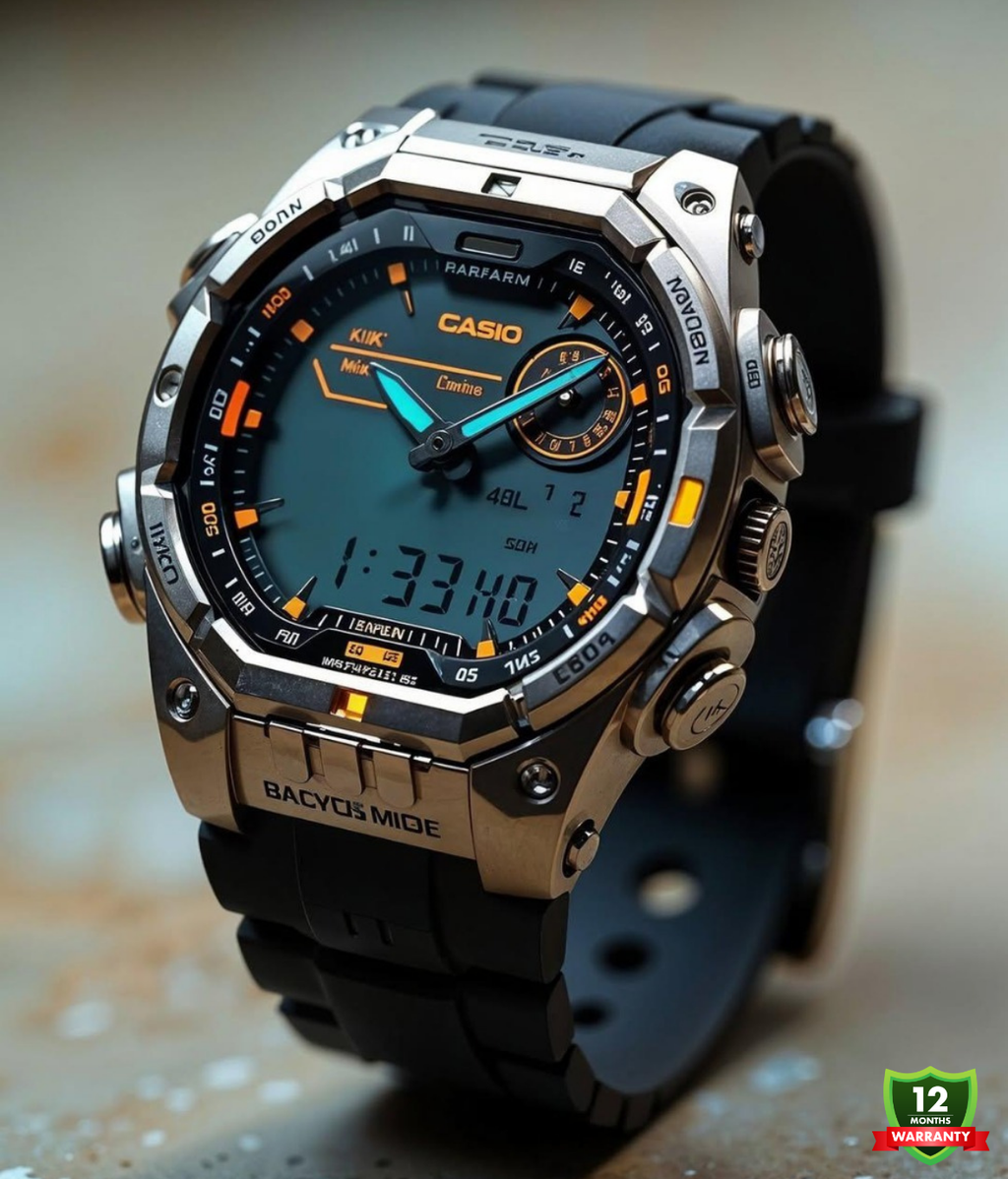 Powered by Casio’s dependable quartz movement, the watch ensures accurate and consistent timekeeping.